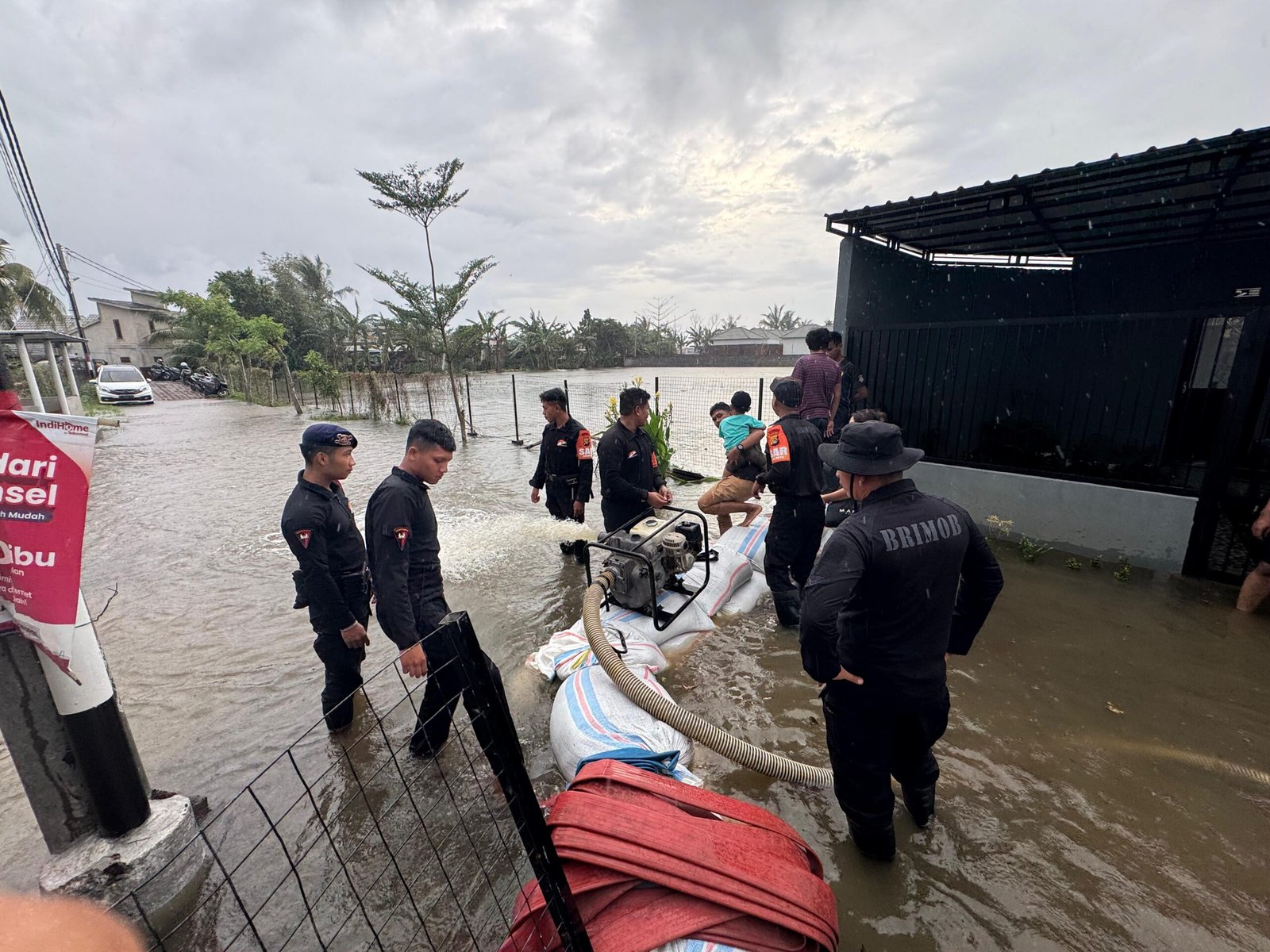 “Dengan sigap, 12 personel Brimob diterjunkan untuk membantu proses evakuasi, baik barang-barang berharga milik warga maupun mengevakuasi orang-orang ke tempat yang lebih aman, terutama anak-anak dan lansia,” ujar Kombes Pol Kholid.