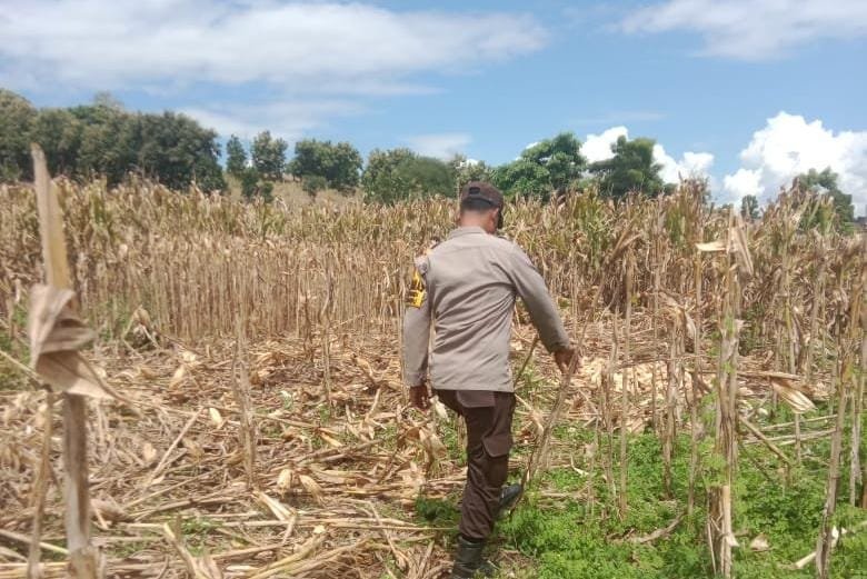 Sabtu 3 Mei 2025 siang kemarin dengan berseragam lengkap Bripka Sukarna membantu proses pemanenan jagung warga binaan di Desa Sampungu Kecamatan Soromandi Kabupaten Bima.