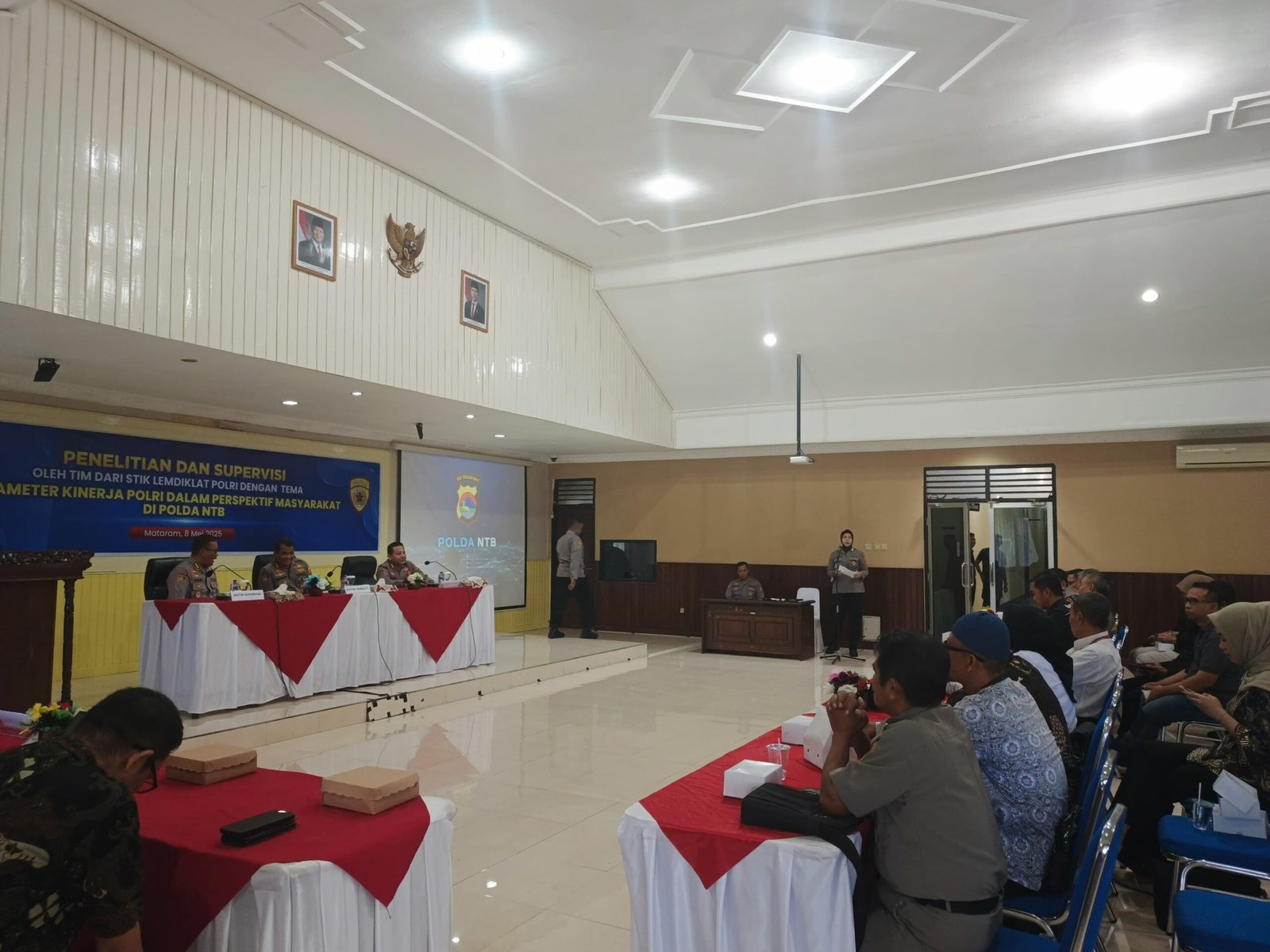 Kegiatan yang berlangsung di Gedung Rupatama Polda NTB ini bertujuan untuk melaksanakan penelitian dan survei terkait tingkat kepercayaan publik terhadap Polri berdasarkan Parameter kinerja Polri dalam perspektif masyarakat di Polda NTB.