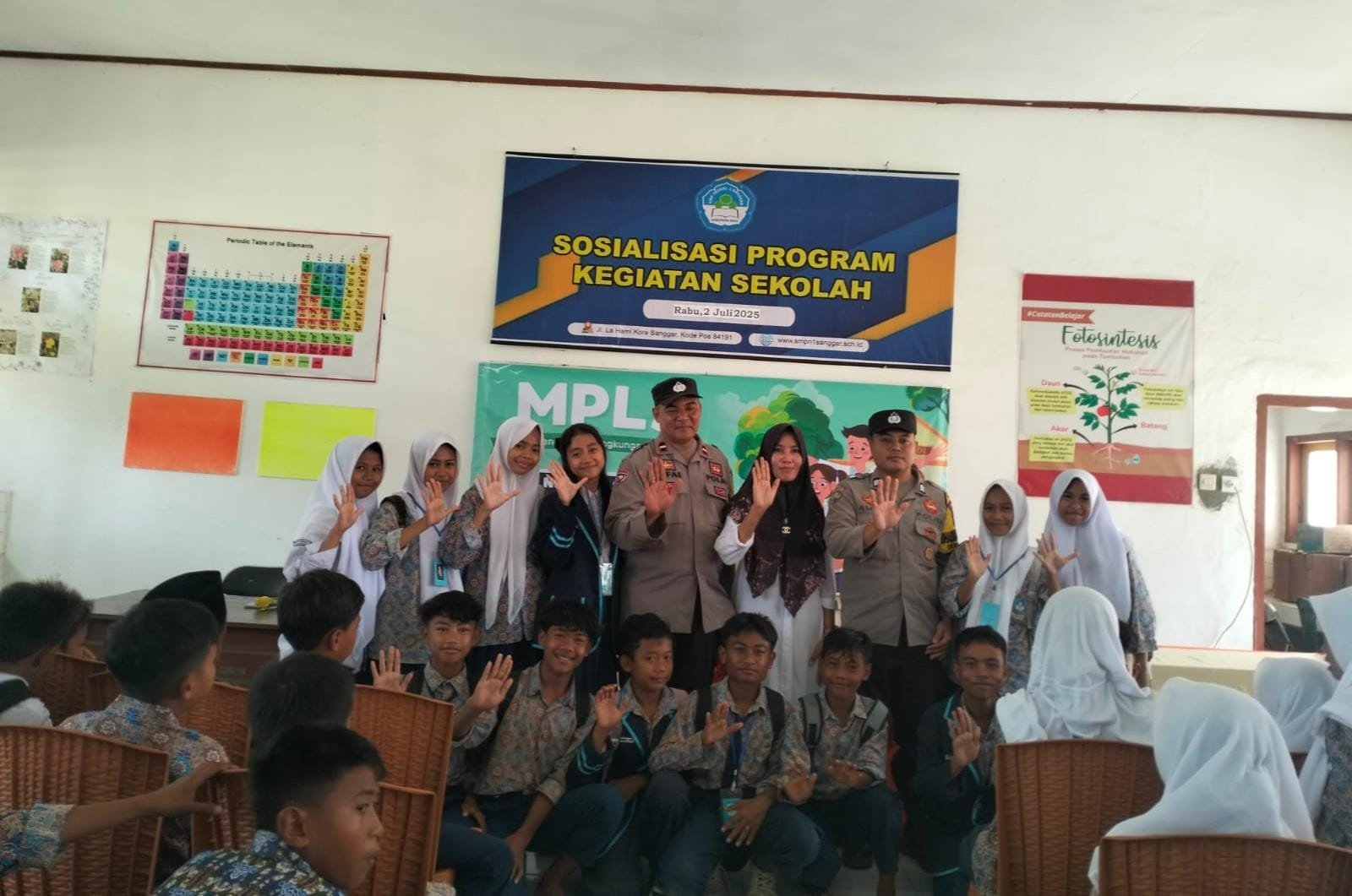 Kepolisian Sektor Sanggar Polres Bima Polda NTB melakukan kunjungan di SMPN Negeri 1 Sanggar Kecamatan Sanggar Kabupaten Bima dalam rangka sosialisasi bahaya laten narkoba pencegahan kenakalan remaja di tingkat pelajar.