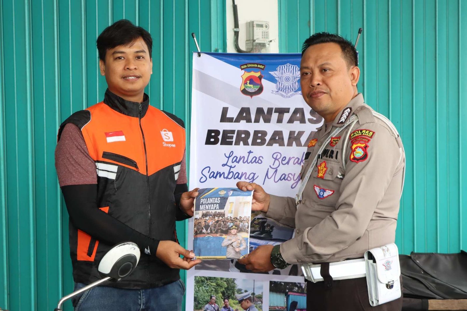 LOMBOK BARAT – Satuan Lalu Lintas (Satlantas) Polres Lombok Barat (Lobar) terus berupaya meningkatkan kesadaran keselamatan berkendara di kalangan masyarakat. Salah satu targetnya adalah kelompok masyarakat terorganisir, termasuk komunitas kurir. Melalui program Polantas Menyapa, Satlantas Polres Lobar mengedukasi para kurir Shopee di Gerung tentang pentingnya tertib berlalu lintas demi keselamatan di jalan raya.